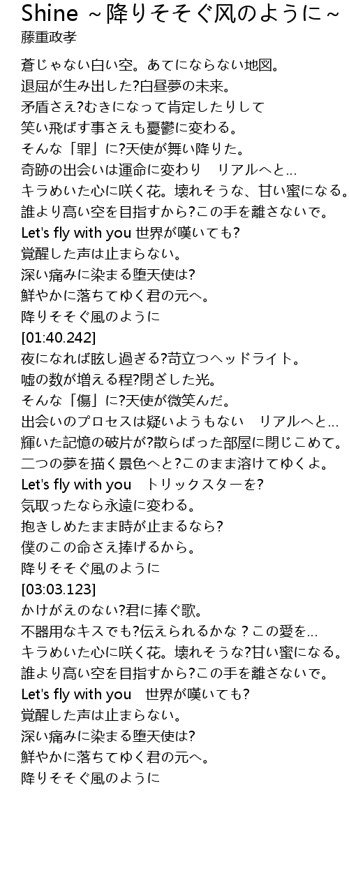 | [03:47.270] | Let's fly with you 世界が嘆いても? |
