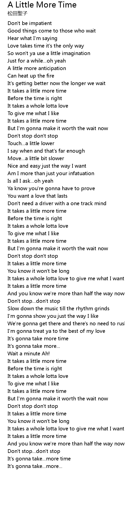 Love takes time it's the only way |