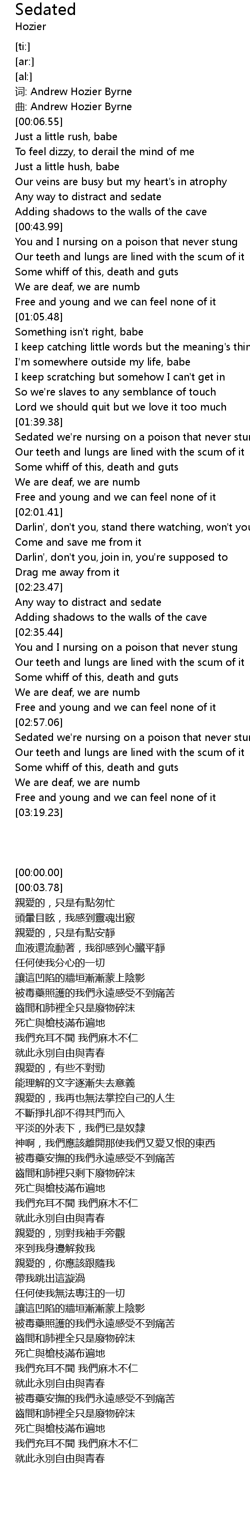 | [00:00.00] | 词: Andrew Hozier Byrne |