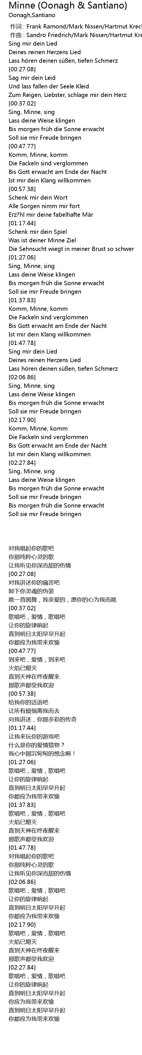 | [00:55.10] | Ist mir dein Klang willkommen |