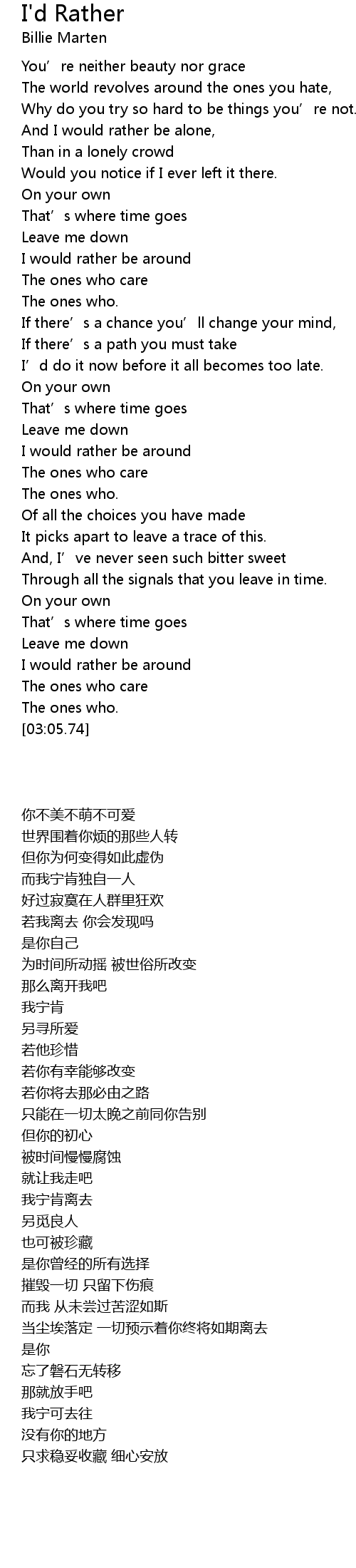 | [00:14.09] | Why do you try so hard to be things you' re not. |