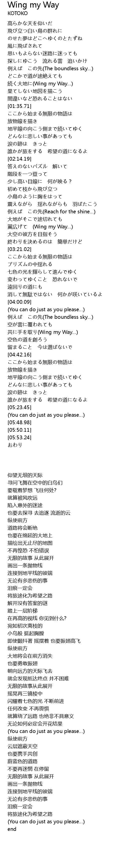 | [04:26.71] | 共に手を取り(Wing my Way…) |