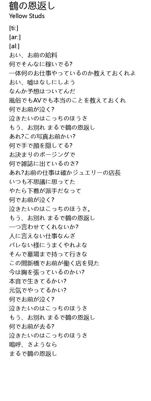 | [00:51.30] | もう、お別れ まるで鶴の恩返し |