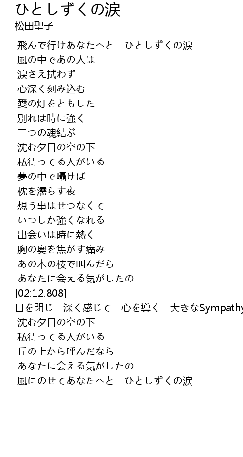 | [03:29.422] | 風にのせてあなたへと ひとしずくの涙 |