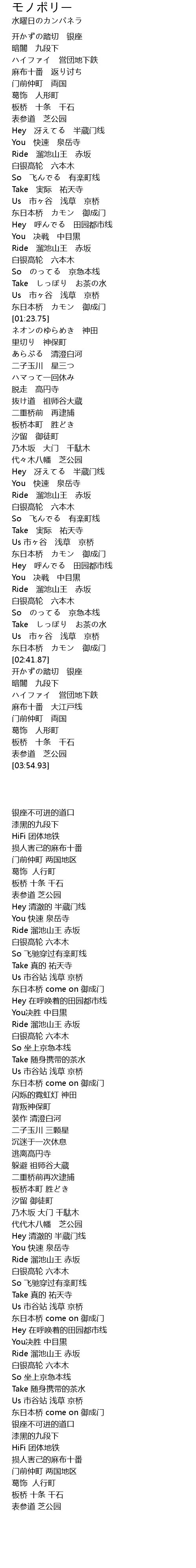 | [02:34.77] | Us 市ヶ谷 浅草 京桥 |