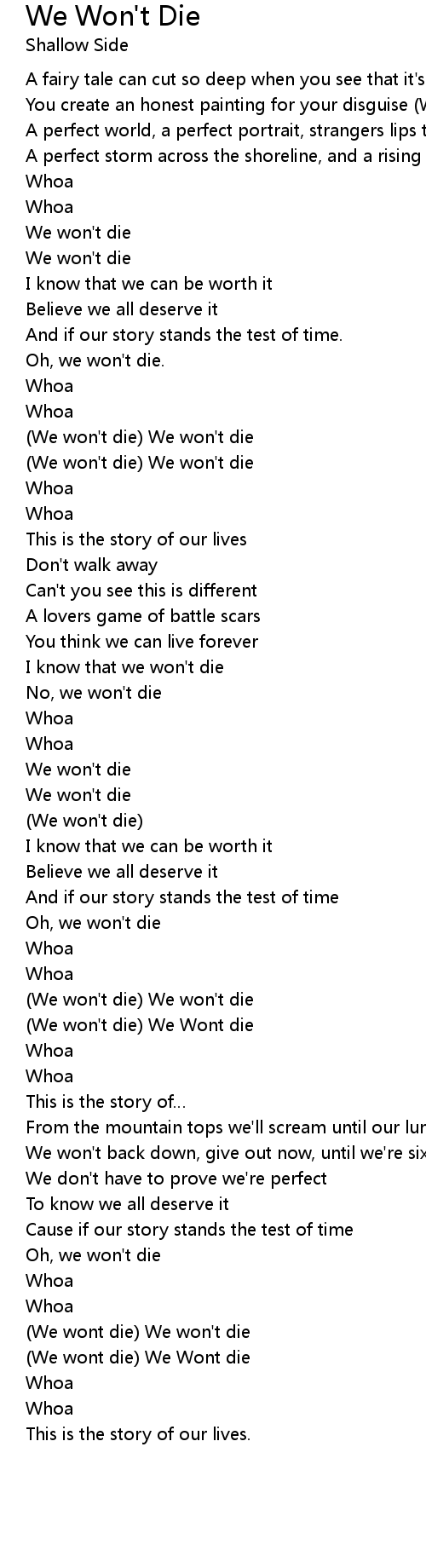 | [00:16] | You create an honest painting for your disguise We won' t die |