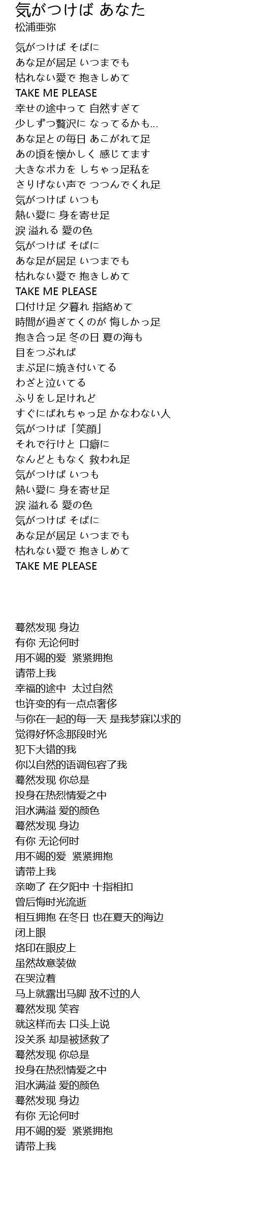 | [02:10.19] | 口付け足 夕暮れ 指絡めて |