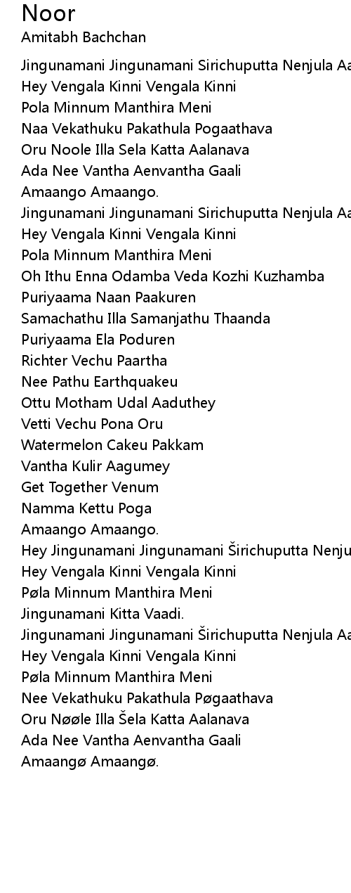 | Hey Jingunamani Jingunamani irichuputta Nenjula Aani | |