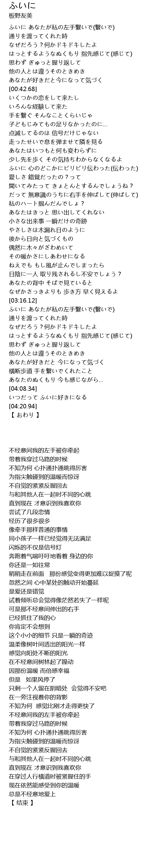 | [03:19.00] | ふいに あなたが私の左手繋いで(繋いで) |