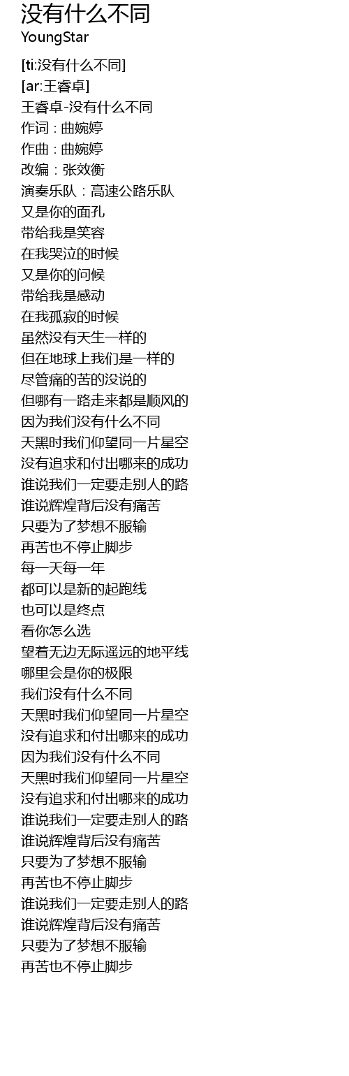 | [00:00.387] | 王睿卓-没有什么不同 |