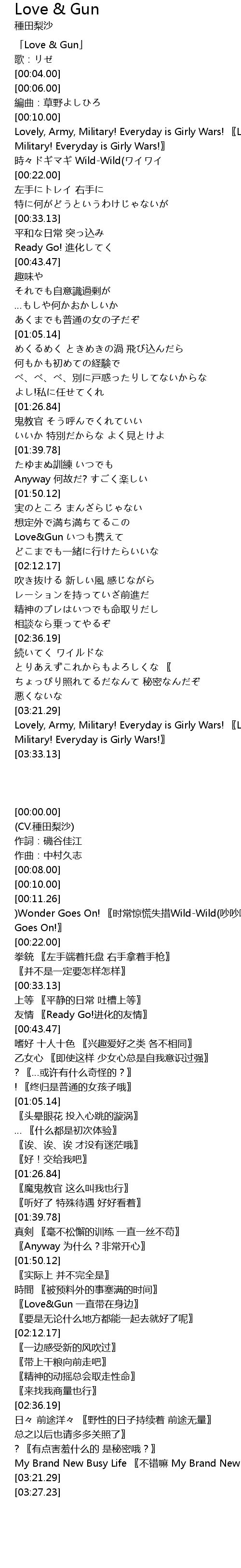 | [03:27.23] | Lovely, Army, Military! Everyday is Girly Wars! Lovely, Army, Military! Everyday is Girly Wars! |