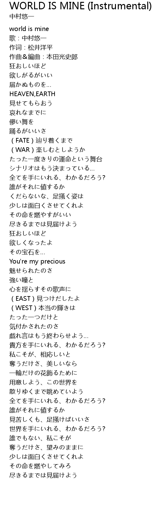 | [00:01.52] | world is mine |