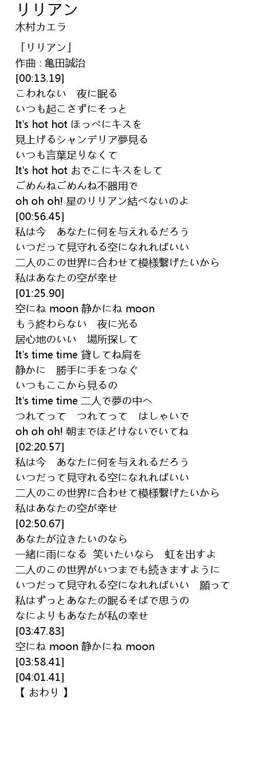 | [00:50.64] | oh oh oh! 星のリリアン結べないのよ |