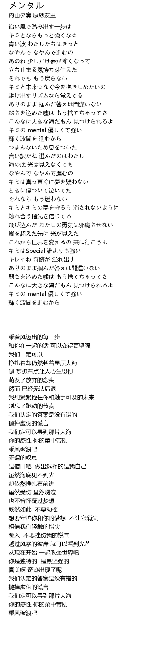 | [03:36.70] | キミの mental 優しくて強い |