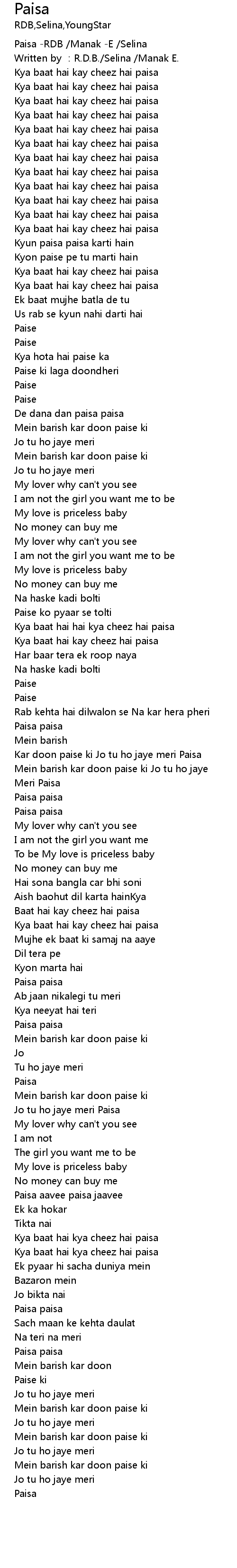 | [00:00.00] | Paisa -RDB /Manak -E /Selina |
