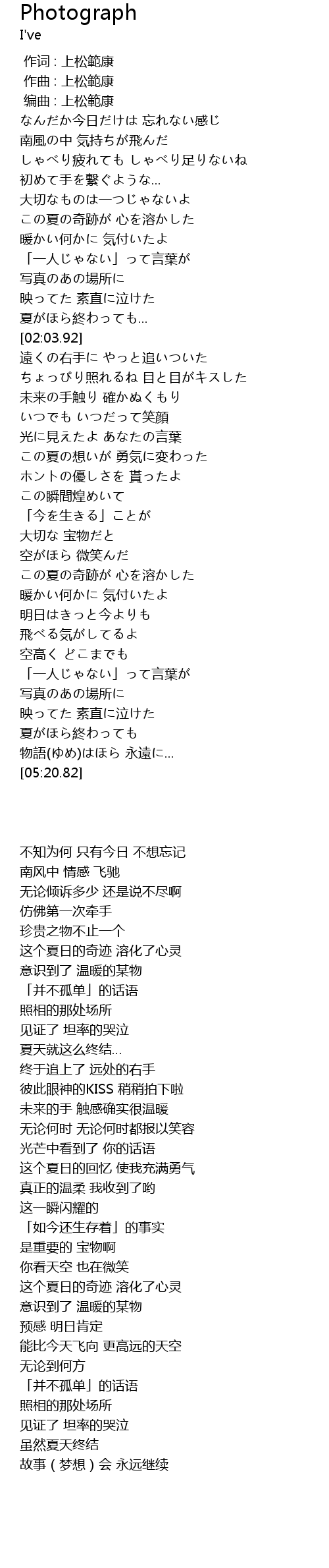 | [04:15.18] | この夏の奇跡が 心を溶かした |