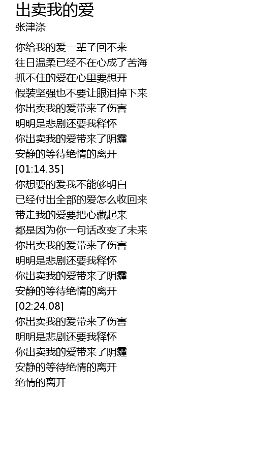 | [02:25.64] | 你出卖我的爱带来了伤害 |