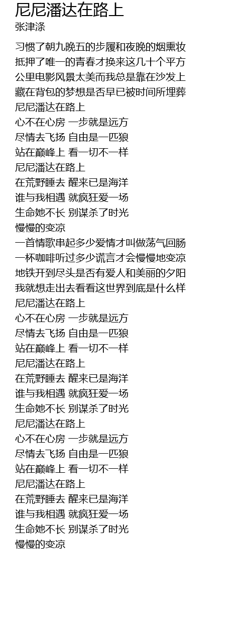 | ní ní pān dá zài lù shàng | |