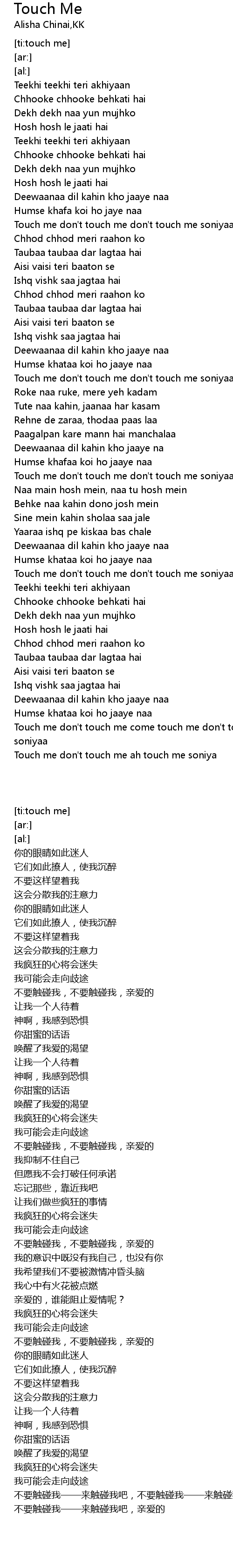 Touch me don't touch me come touch me don't touch me come touch me soniyaa |