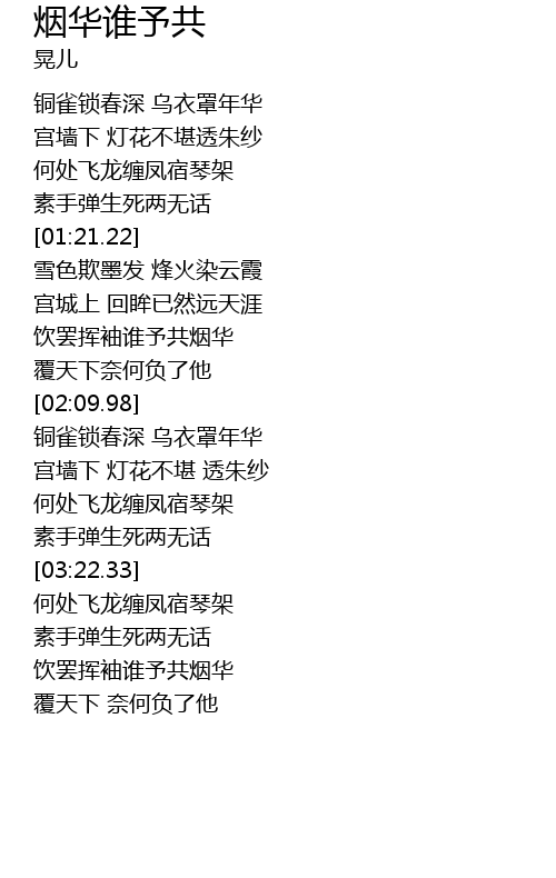 | [00:38.41] | 铜雀锁春深 乌衣罩年华 |