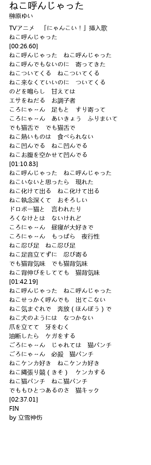 | [01:55.26] | ねこ呼んじゃった ねこ呼んじゃった |