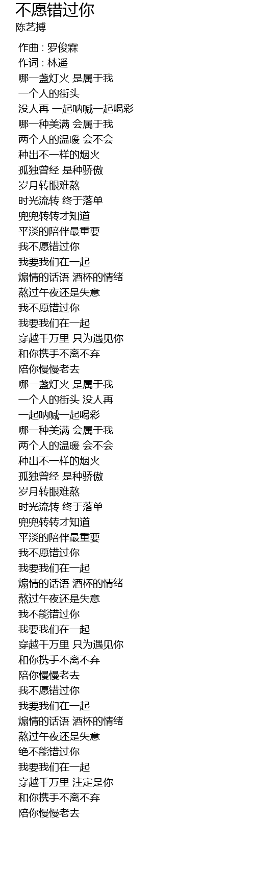 | [01:28.490] | wǒ bù yuàn cuò guò nǐ |