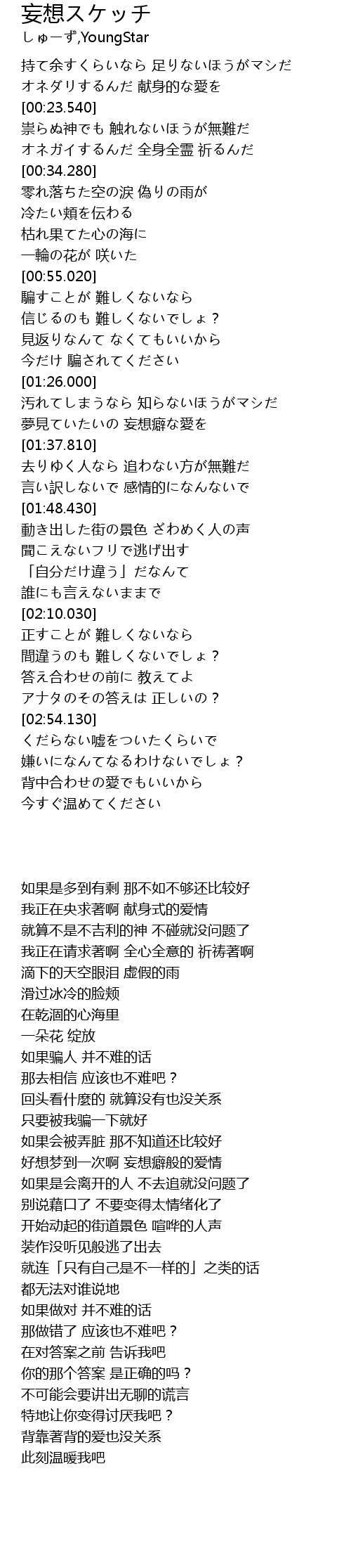 | [01:32.700] | 夢見ていたいの 妄想癖な愛を |