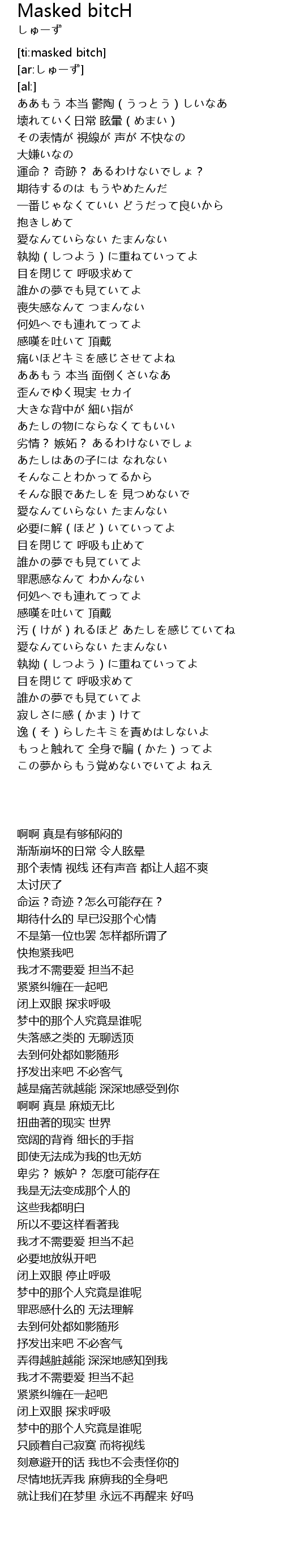 | [00:17.01] | その表情が 視線が 声が 不快なの |