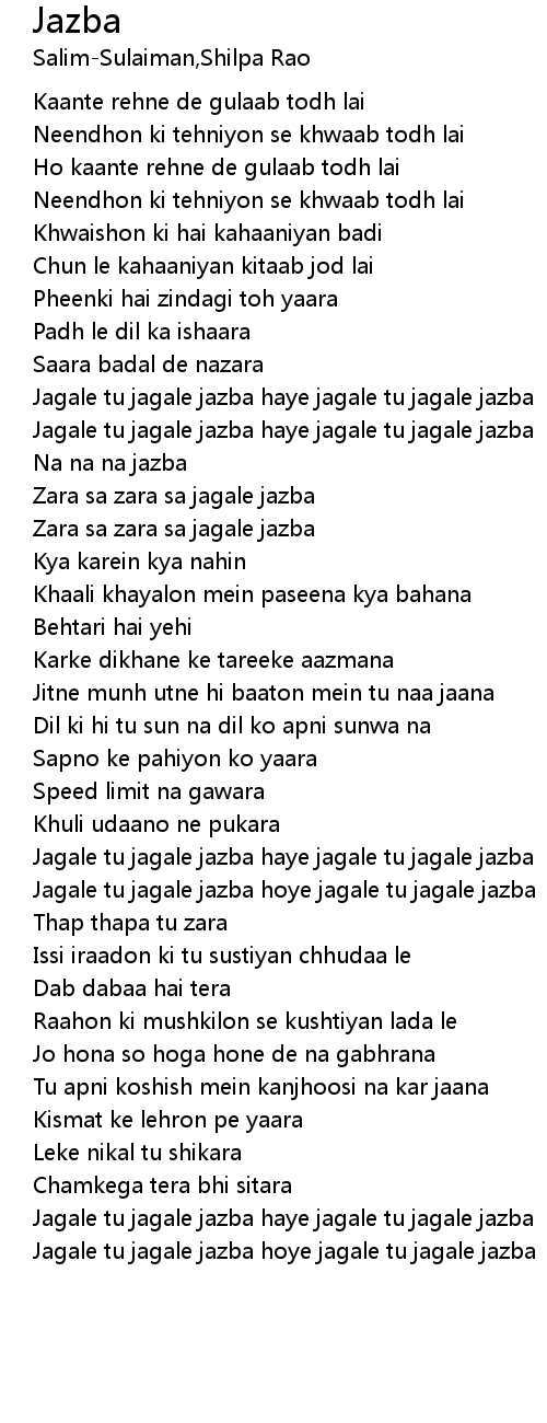 Jagale tu jagale jazba haye jagale tu jagale jazba |