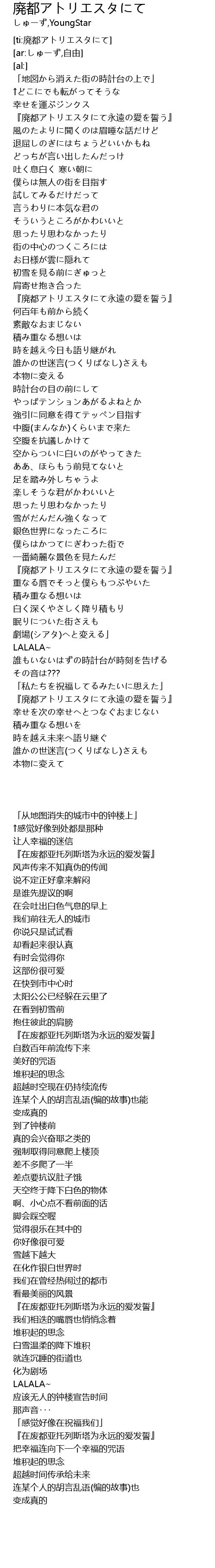 | [00:01.56] | 「地図から消えた街の時計台の上で」 |