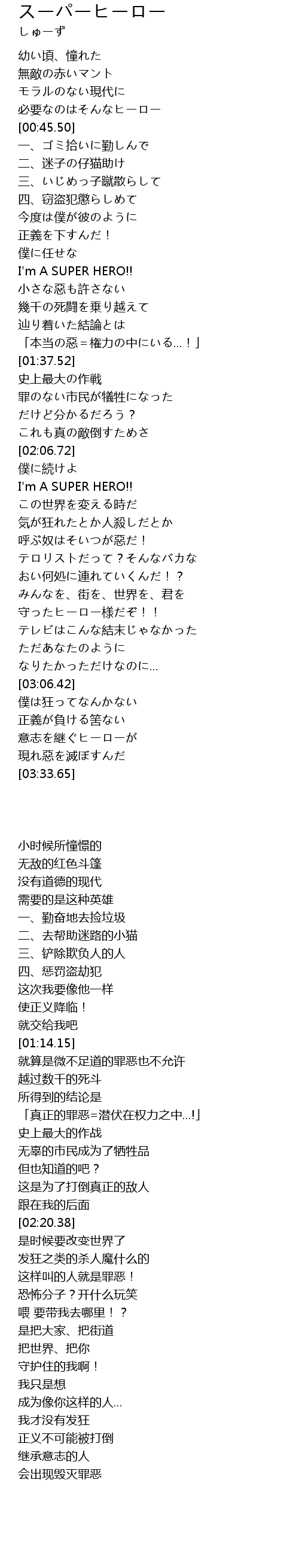 | [02:20.38] | I' m A SUPER HERO!! |