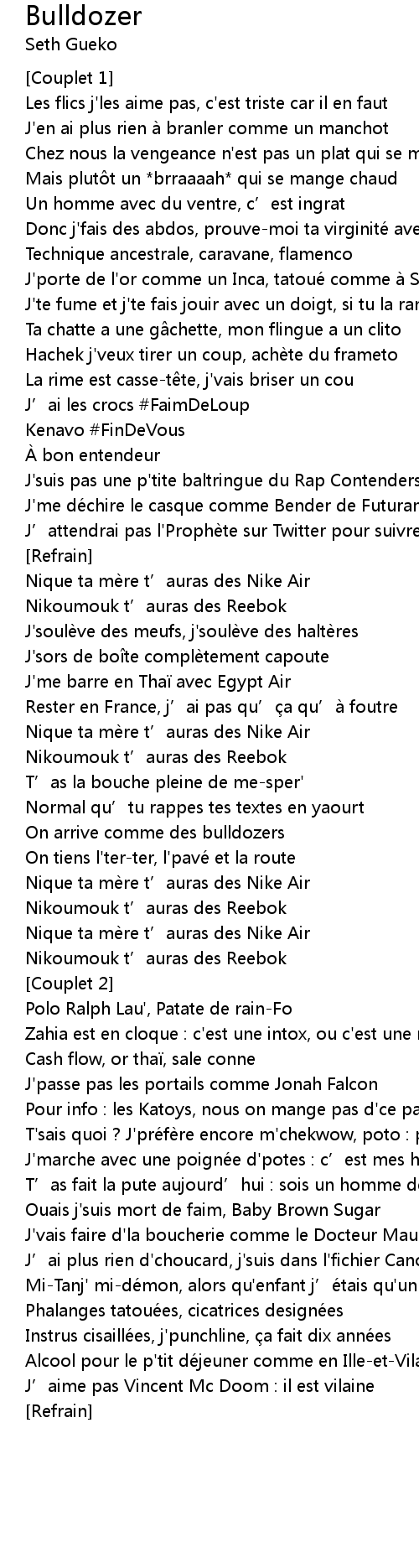 | Donc j' fais des abdos, prouvemoi ta virginite avec un drap | |