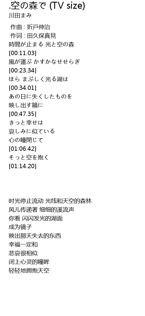 | [00:02.95] | 時間が止まる 光と空の森 |