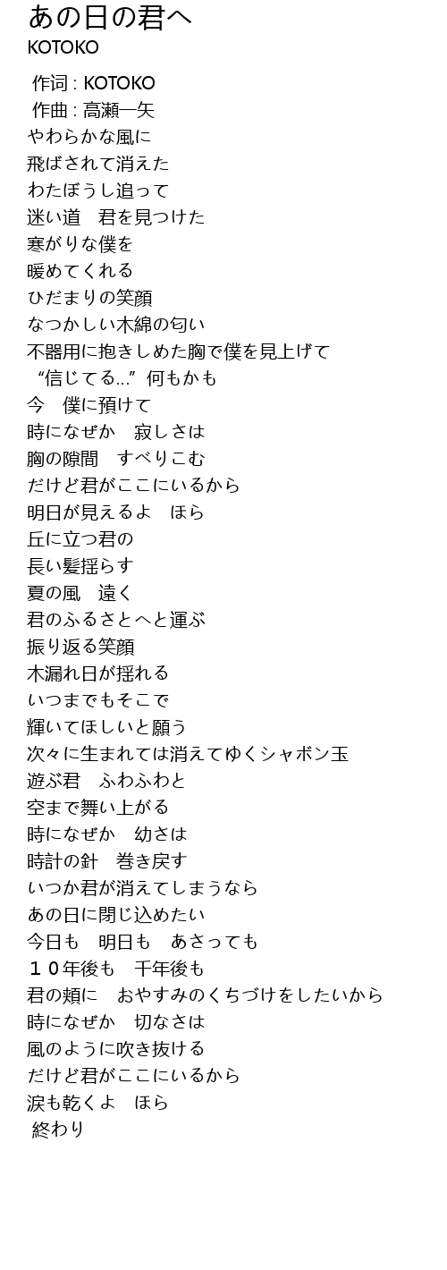 | [00:00.000] | 作词 : KOTOKO |
