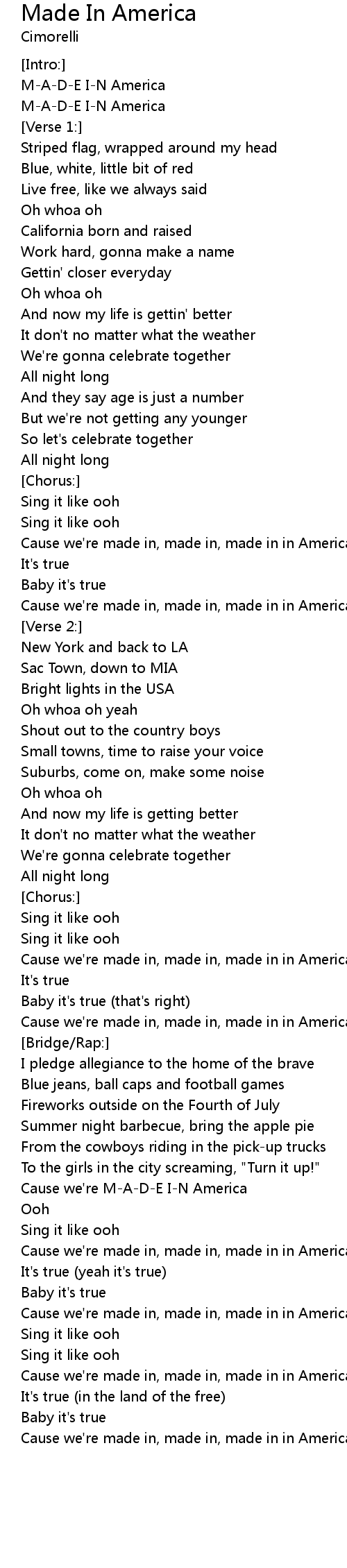 Cause we're M-A-D-E I-N America |
