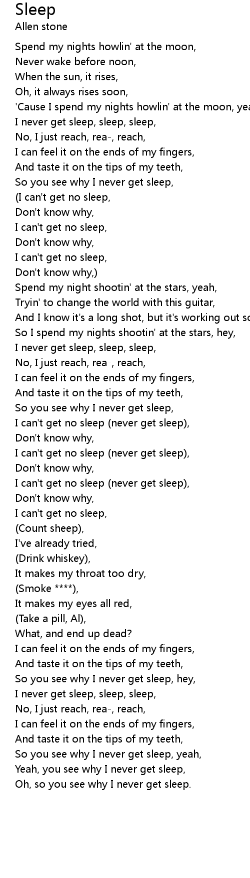 I can't get no sleep, |