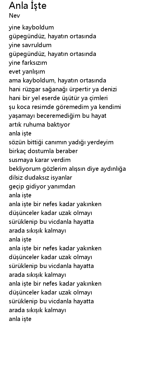 | Song | Anla İşte |