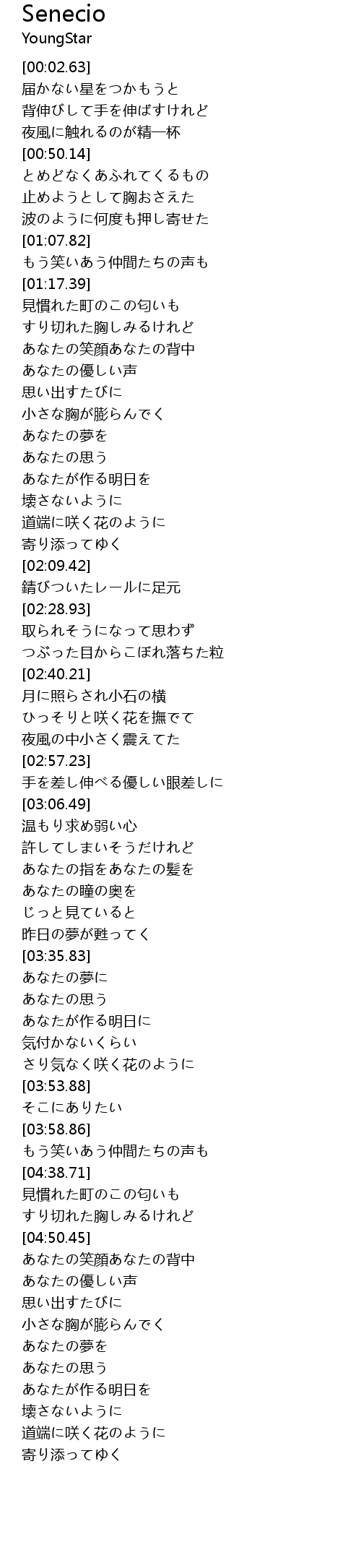 | [02:46.98] | ひっそりと咲く花を撫でて |