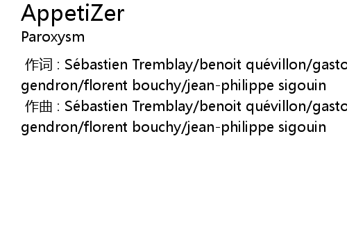 | [00:00.000] | 作曲 : Sébastien Tremblay/benoit quévillon/gaston gendron/florent bouchy/jean-philippe sigouin |