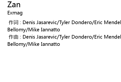 | [00:00.000] | zuo qu : Denis Jasarevic Tyler Dondero Eric Mendelson Bryn Bellomy Mike Iannatto |