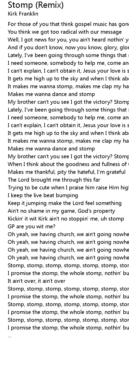 I promise the stomp, the whole stomp, nothin' but the stomp |