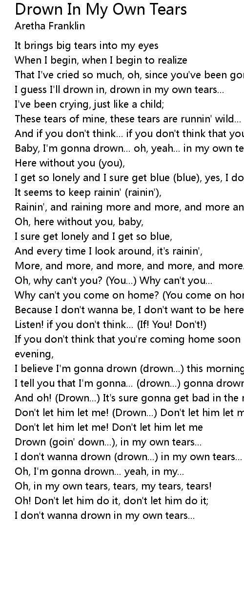Baby, I'm gonna drown... oh, yeah... in my own tears... |