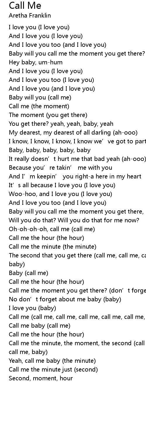| Call me the minute, the moment, the second call me, call me, call me, call me, call me, baby | |