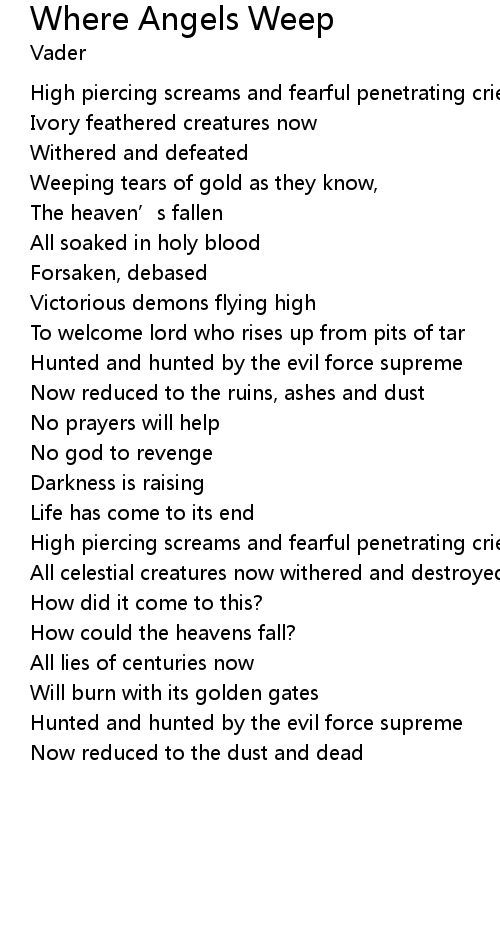 | Song | Where Angels Weep |