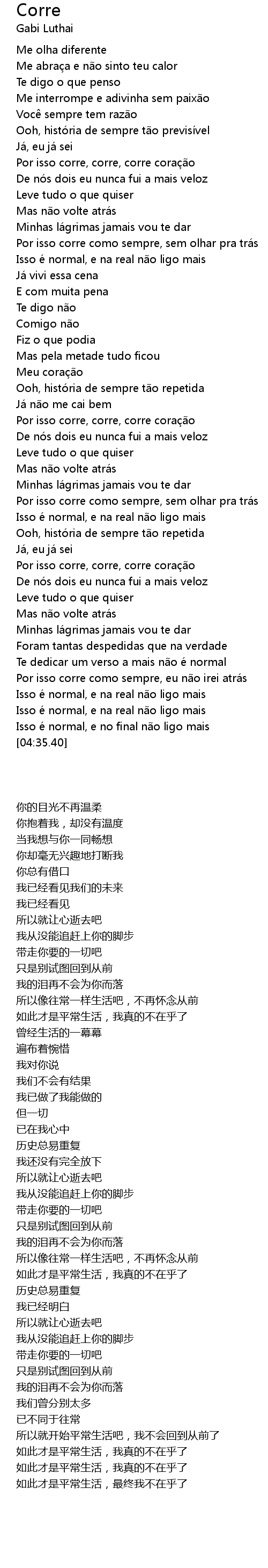 | [03:32.76] | Por isso corre, corre, corre coração |
