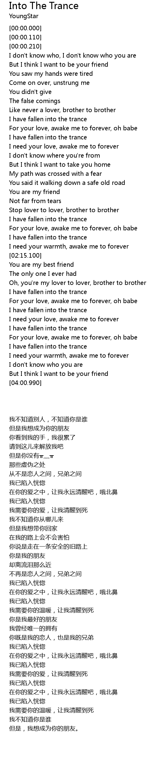 I have fallen into the trance |