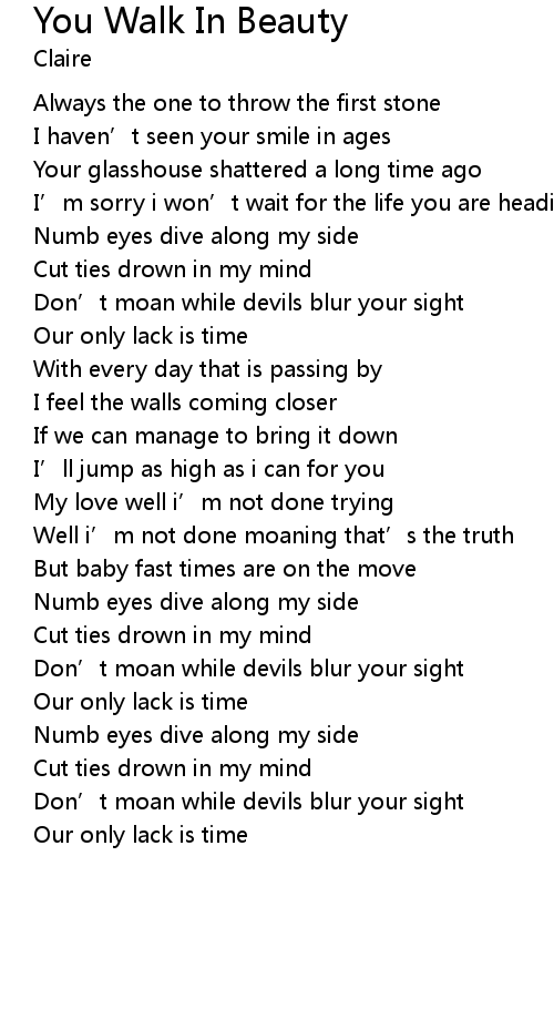 | Song | You Walk In Beauty |