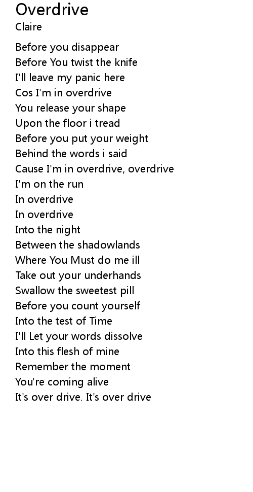 Cause I'm in overdrive, overdrive |