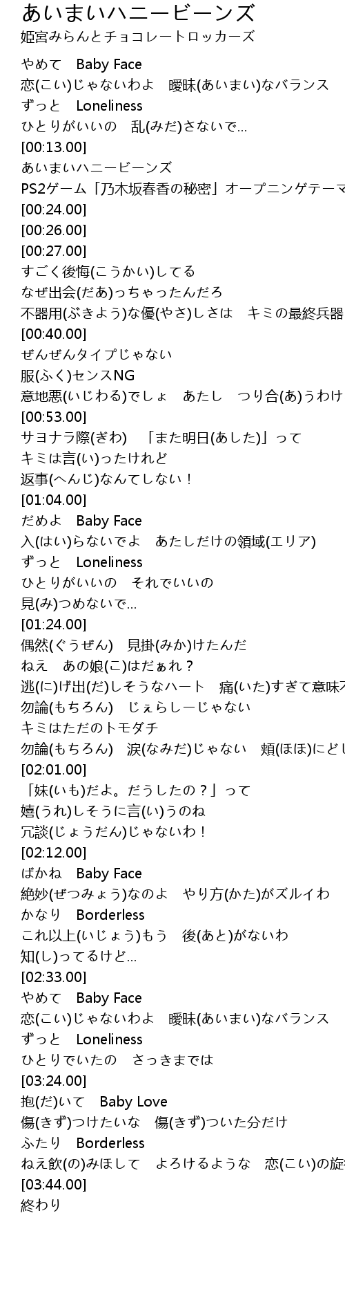 | [00:16.00] | あいまいハニービーンズ |