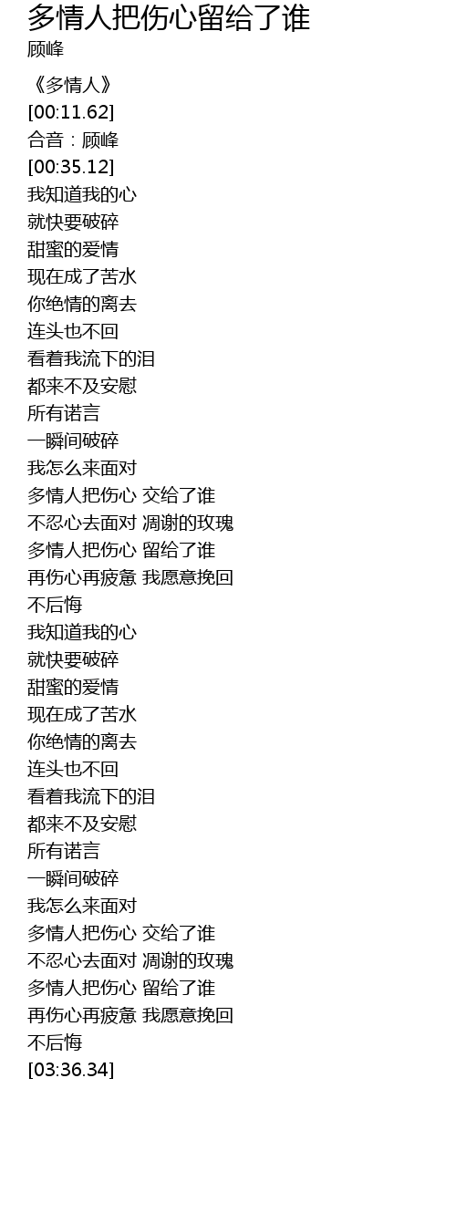 | [03:01.34] | 多情人把伤心 留给了谁 |